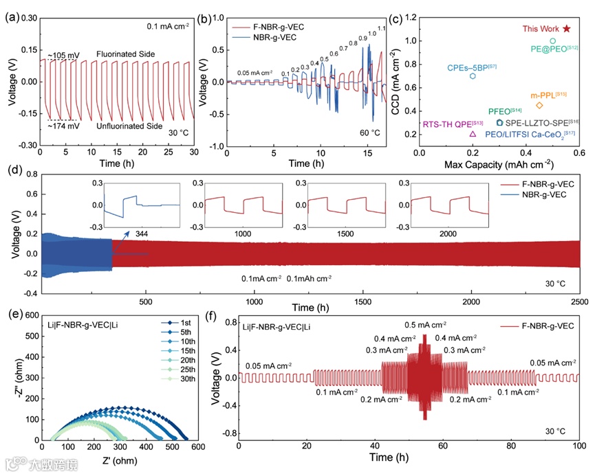 图2、F-NBR-g-VEC电解质的电化学表征。