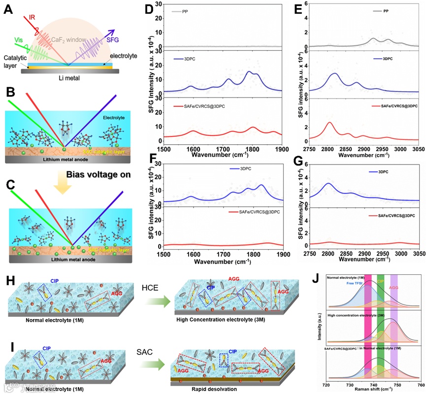 2. 原位电化学和频振动光谱(SFG)研究Li+-Solvents去溶剂化动态变化过程