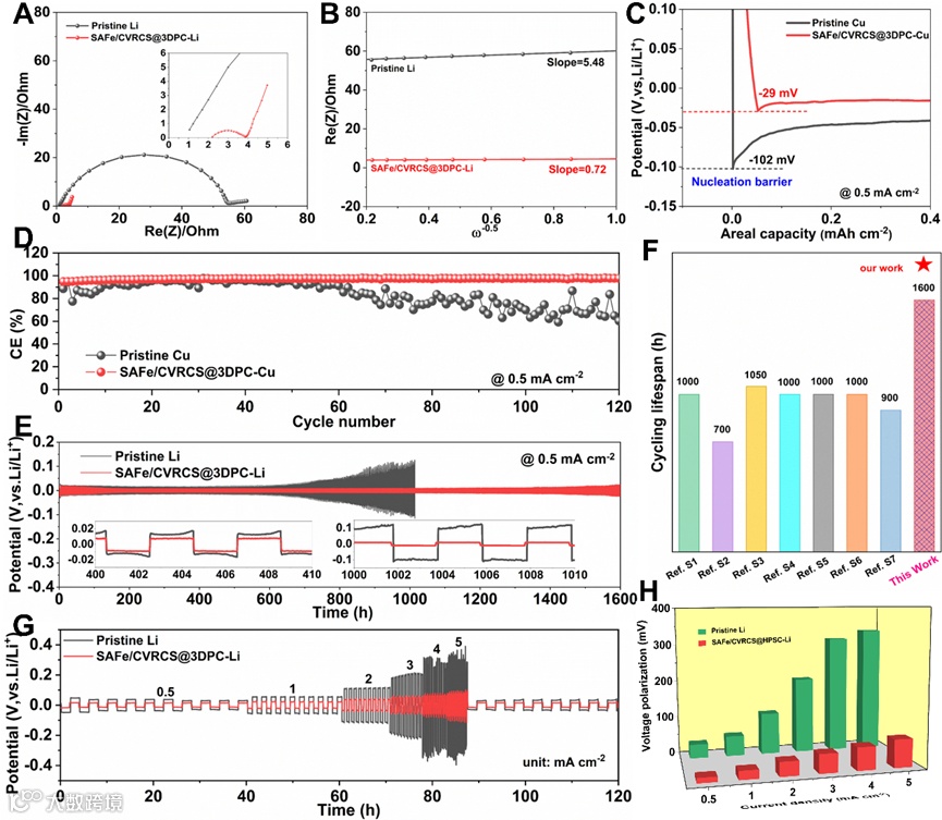 Figure 4. Dendrite-free Li plating performance with SAFe/CVRCS@3DPC.