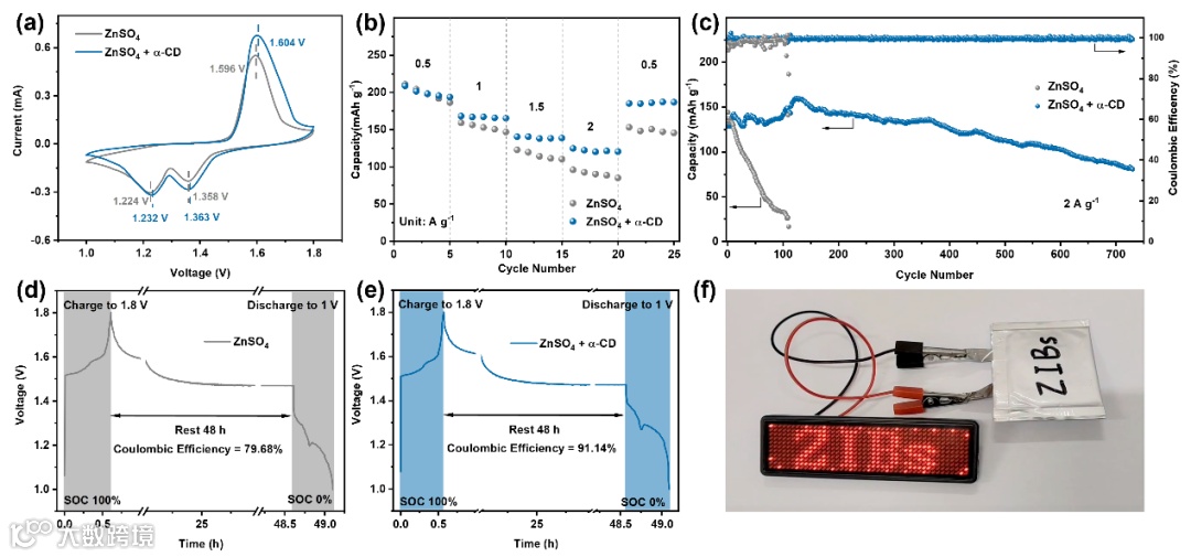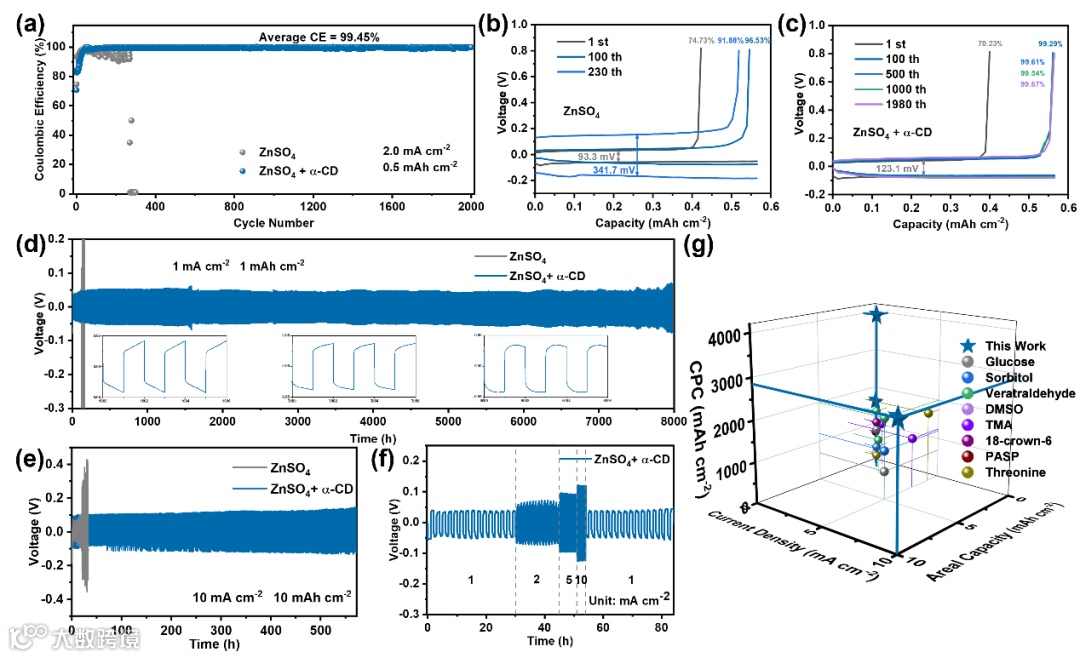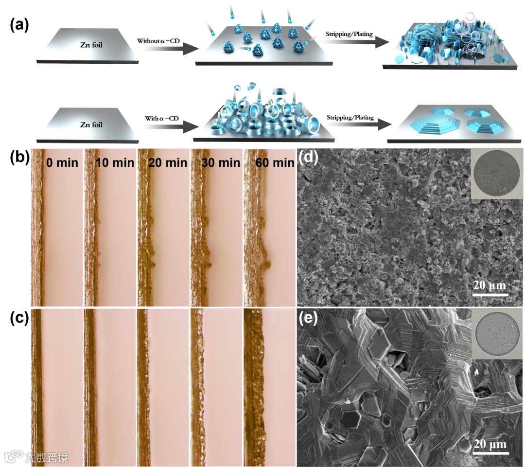 1、α-环糊精可在负极/电解液界面形成动态自适应吸附层,有效缓解了枝晶生长和副反应等问题。