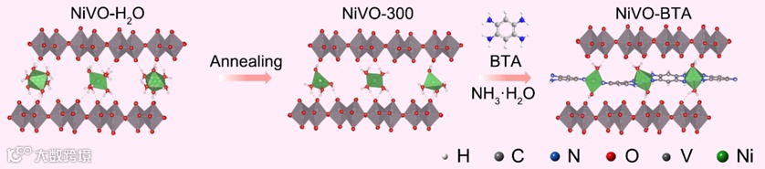 图1. Ni-BTA插层VOx的制备和结构变化示意图。