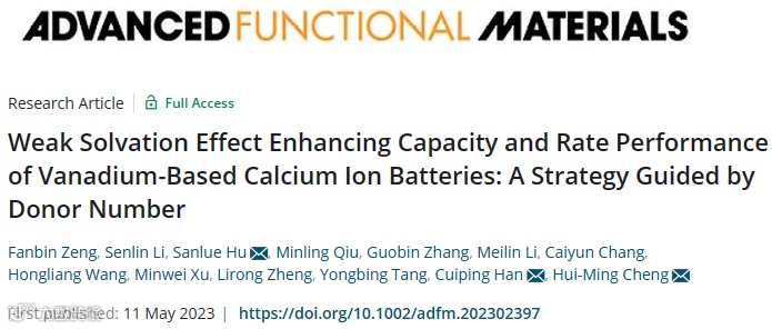 基于供体数调控的弱溶剂化效应实现钒基钙离子电池容量、倍率性能双重提升