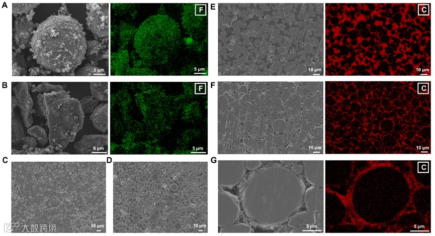 图1. 干法混合粉末以及干法和湿法电极的微观结构。