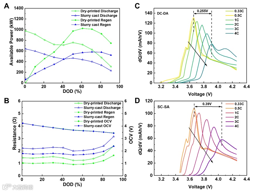 图5. 干法、湿法电极HPPC和快充微分容量曲线分析。