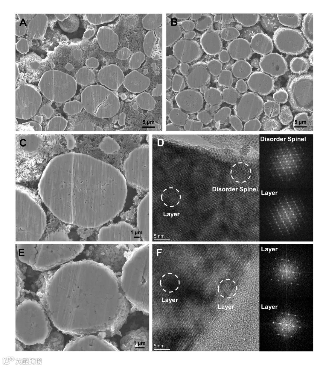 图7. 循环后干法/湿法软包电池正极微观结构和晶格结构分析。