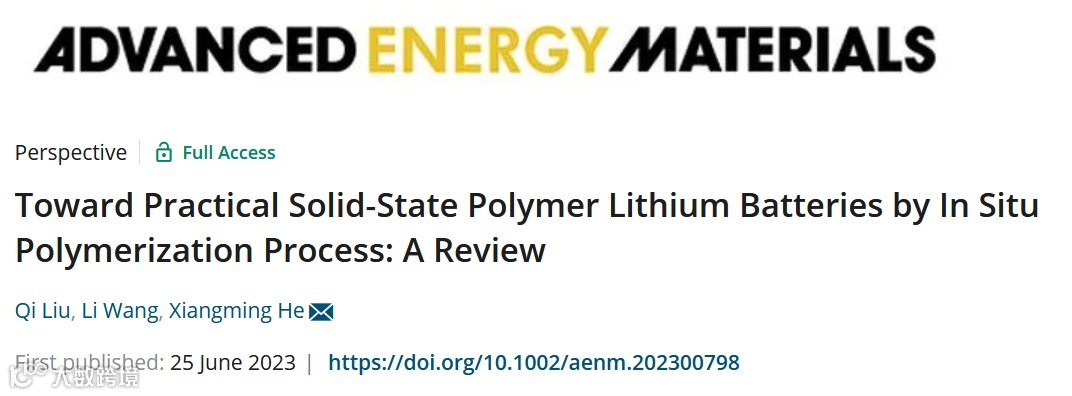 近日,来自四川大学的联合培养博士生刘奇与清华大学何向明课题组合作,在国际知名期刊Advanced Energy Materials上发表题为“Toward Practical Solid-State Polymer Lithium Batteries by In-situ Polymerization Process”的观点文章。该观点文章分析了现在聚合物固态电解质的原位聚合工艺制备固态聚合物电池的进展和发展方向。