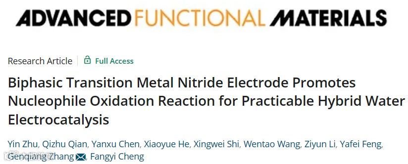 过渡金属异质结氮化物促进甘油氧化升级,辅助工业级高能效产氢