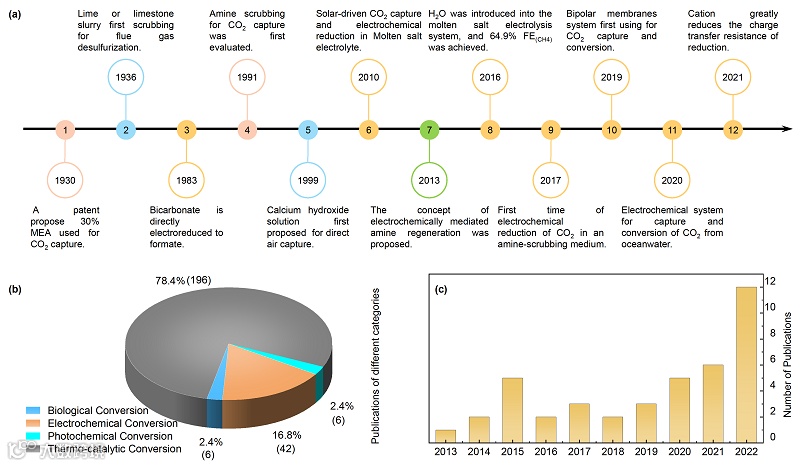 图1. CO2捕集与电催化CO2转化一体化的研究进展。