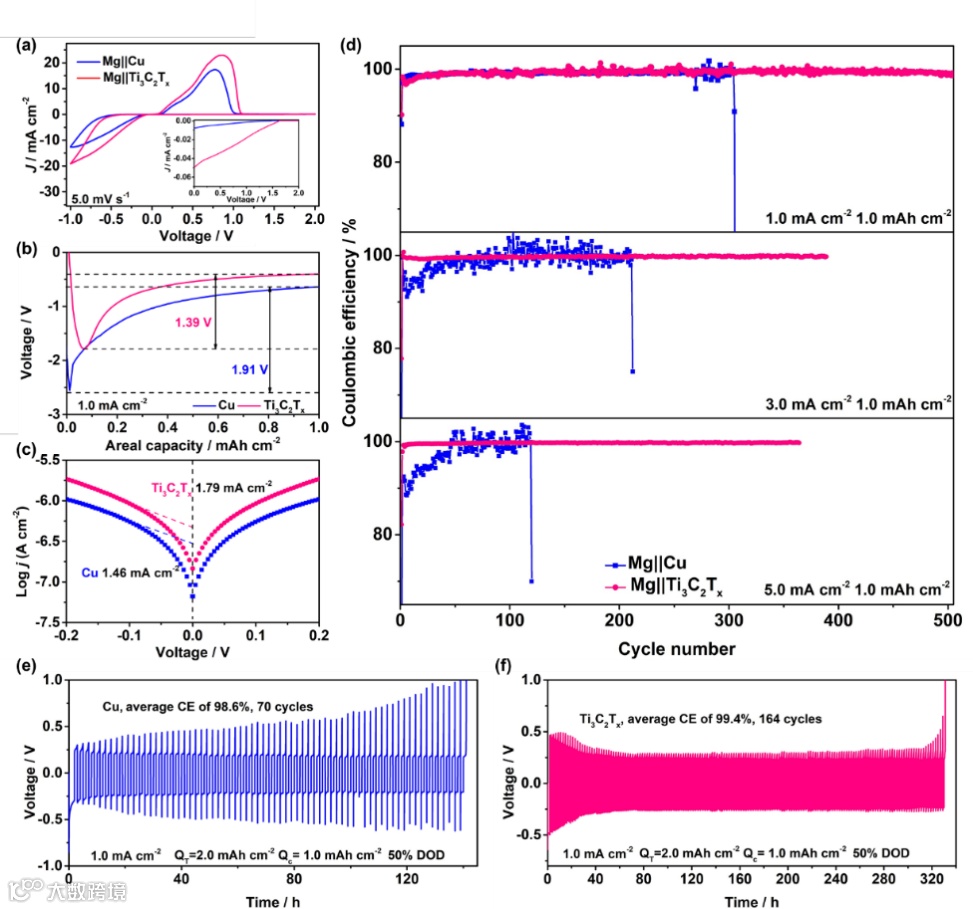 要点4:Ti3C2Tx MXene在实际工况下也能够实现高度可逆的镁沉积/溶解