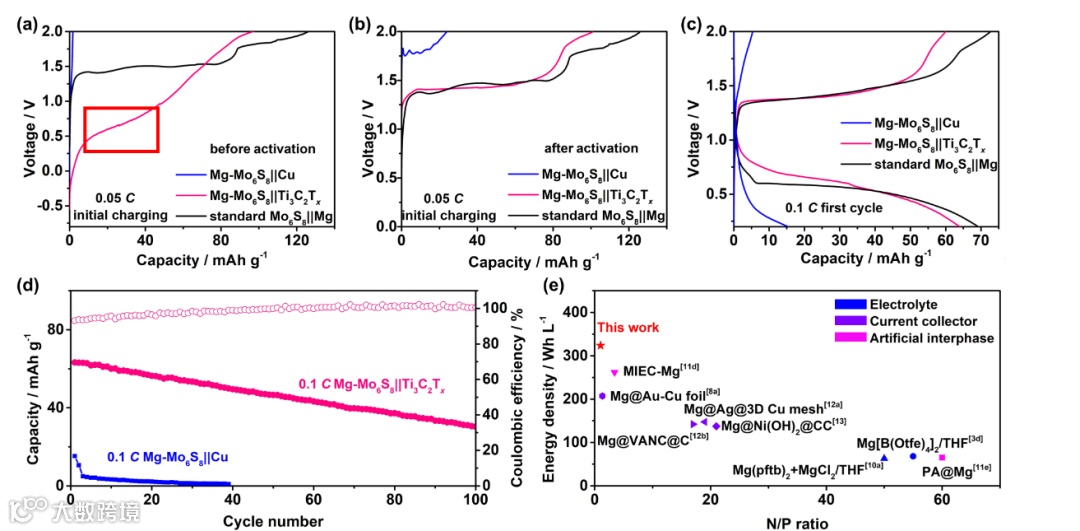 要点5 基于Ti3C2Tx MXene的无负极镁金属全电池具有优异的循环性能以及超高的体积能量密度