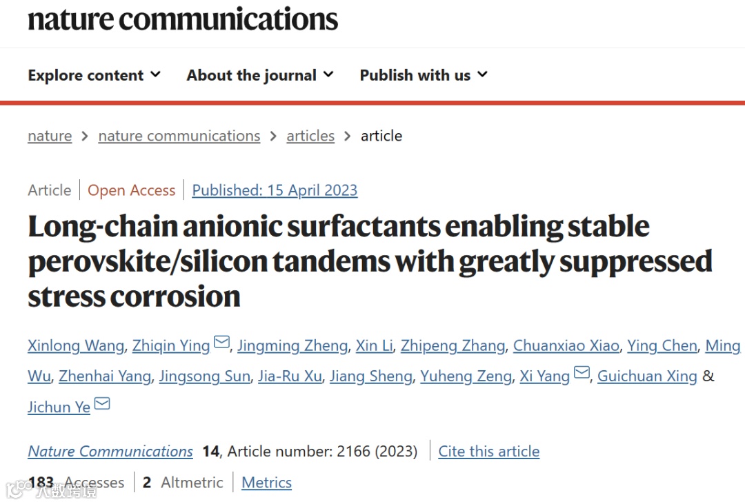 Wang, X., Ying, Z., Zheng, J. et al. Long-chain anionic surfactants enabling stable perovskite/silicon tandems with greatly suppressed stress corrosion. Nat Commun 14, 2166 (2023).