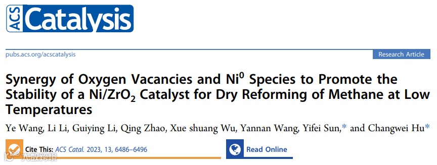 近日,来自四川大学胡常伟教授与北京航空航天大学的孙轶斐教授合作,在国际知名期刊ACS Catalysis上发表题为“Synergy of oxygen vacancy and Ni0 species to promote the stability of Ni/ZrO2 catalyst for dry reforming of methane at low temperature”的观点文章。