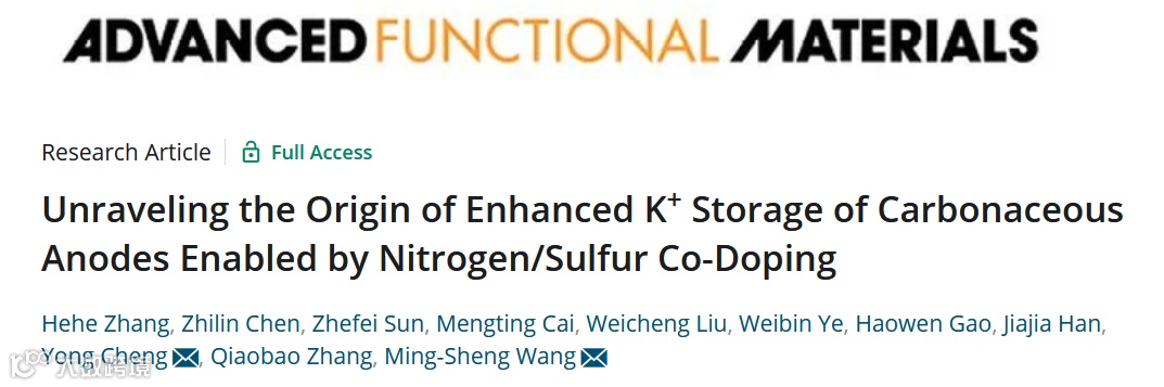 探索N/S共掺杂提升碳基材料储钾性能的起源