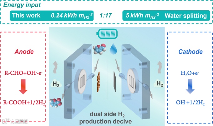 近日,《Advanced Materials》在线发表了湖南大学邹雨芹教授的研究成果,该工作设计了一种混合价态铜(MV Cu)催化剂,依此组装的双极产氢器件在0.3 V的超低槽压工作时的产氢能耗仅为0.24 kWh mH2-3,并表现出良好的稳定性。除此之外,该工作基于对阳极超低电位醛氧化反应机理的探究,揭示了低电位醛氧化反应中铜基催化剂失活的根本原因,并提出了稳定铜基催化剂的设计原则。