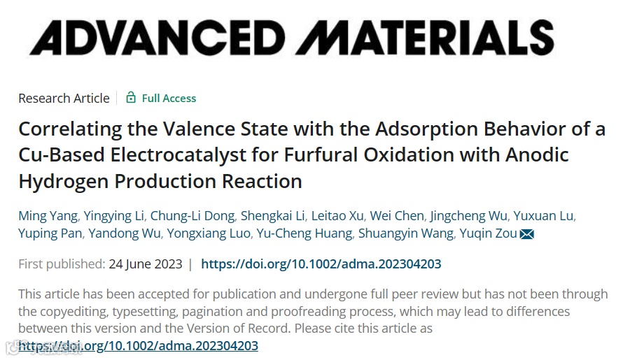 关联铜基催化剂的价态与吸附行为用于阳极糠醛氧化产氢反应