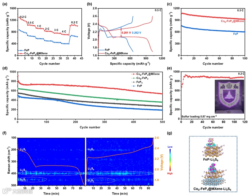 要点三:CoD-FePv@MXene催化剂对Li-S电池的性能提升与理论证明