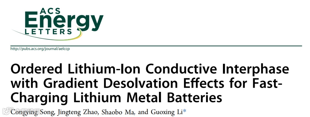 近日,山东大学物质创制与能量转换科学研究中心李国兴教授团队在国际知名期刊ACS Energy Letters上发表题为“Ordered Lithium-Ion Conductive Interphase with Gradient De-solvation Effects for Fast-Charging Lithium Metal Batteries”的快报文章。该文章提出了一种通过在锂金属负极表面自组装具有有序结构和梯度分布的官能团的锂离子传导层来调控锂离子的去溶剂化和扩散过程的策略,有效改善了锂金属电池的快充能力。