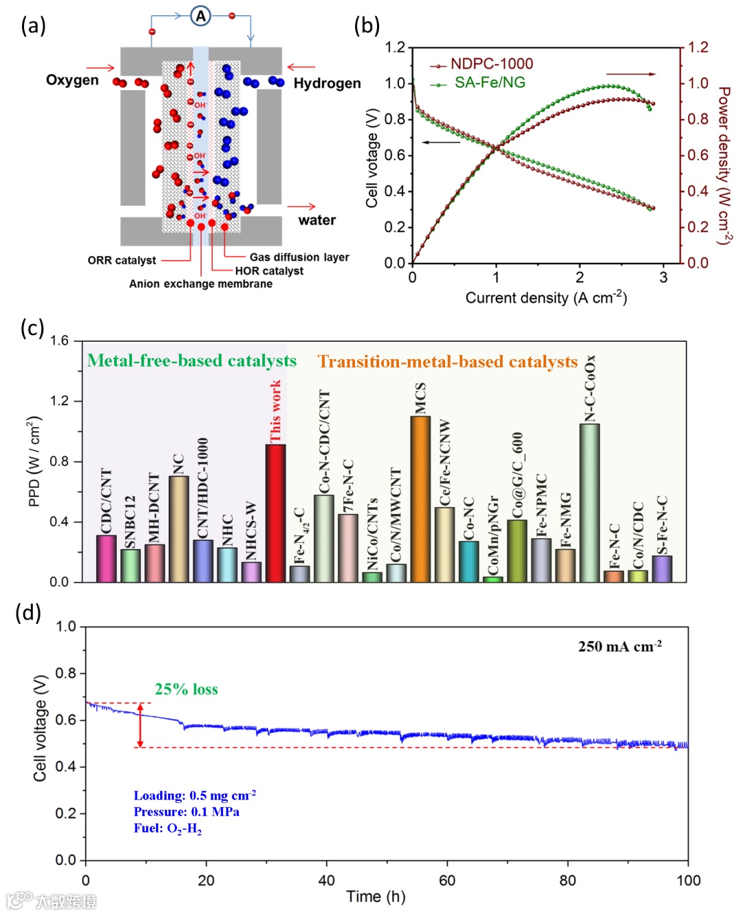 高效耐久的无金属氧还原电催化剂用于阴离子交换膜燃料电池