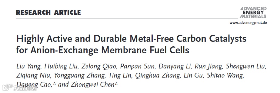 基于此,来自滑铁卢大学的陈忠伟院士与北京化工大学曹达鹏教授在国际知名期刊Advanced Energy Materials 上发表题为“Highly Active and Durable Metal-Free Carbon Catalysts for Anion-Exchange Membrane Fuel Cells”的研究文章。