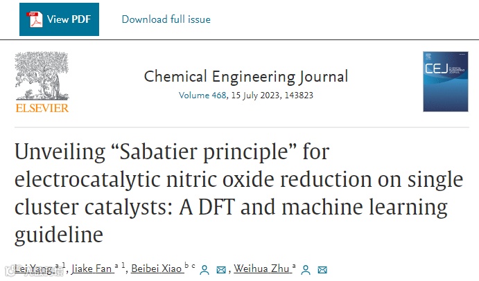 揭示单团簇催化剂电还原一氧化氮的“Sabatier法则”:密度泛函理论和机器学习指南