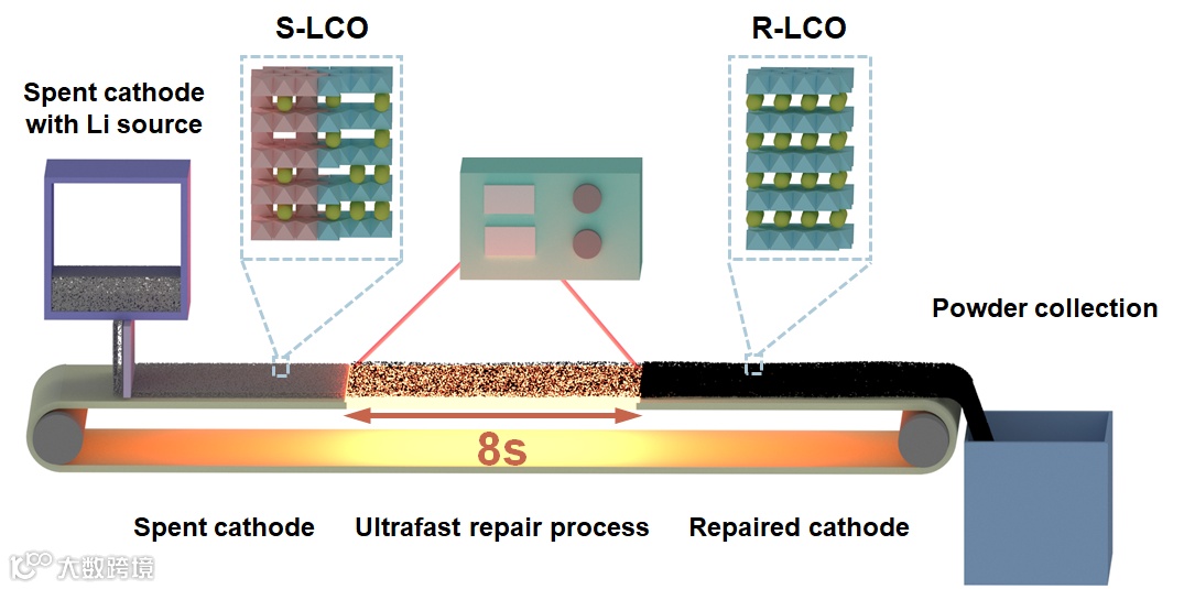 图 5. 通过超快修复方法对正极材料进行大规模修复的示意图。