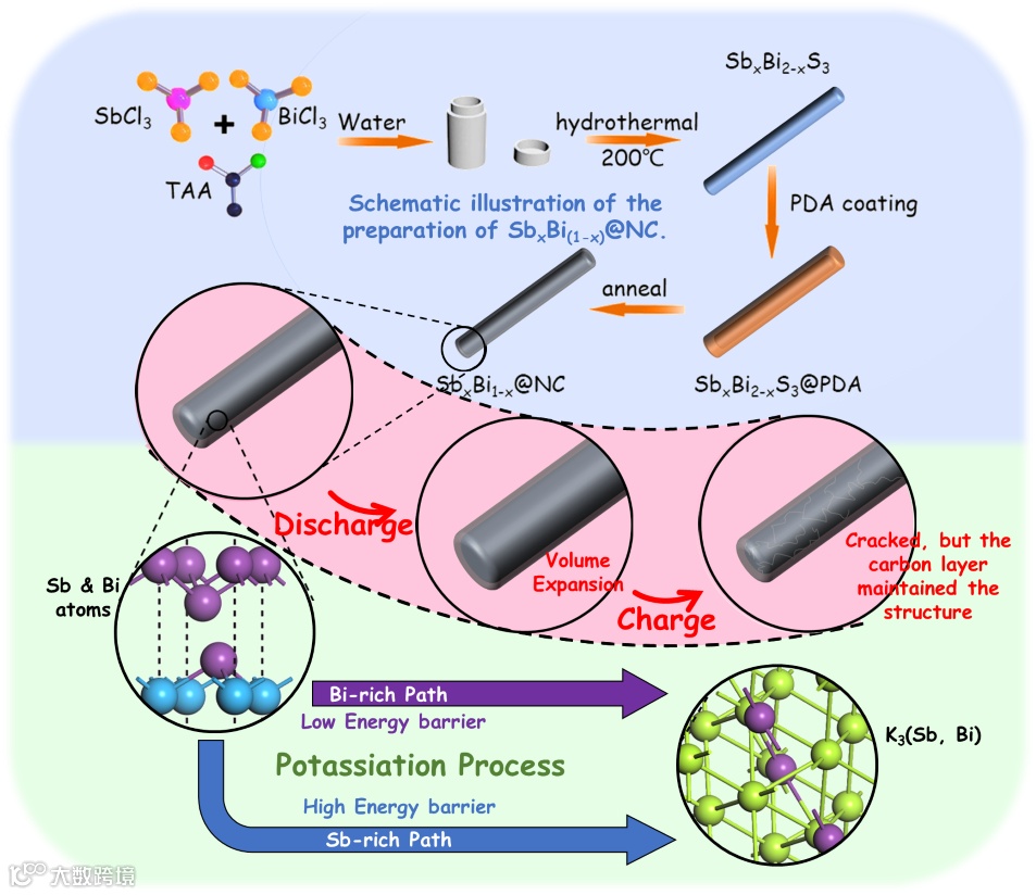 构建快速的钾化路径从而造就SbxBi1-x@NC材料超高的循环稳定性
