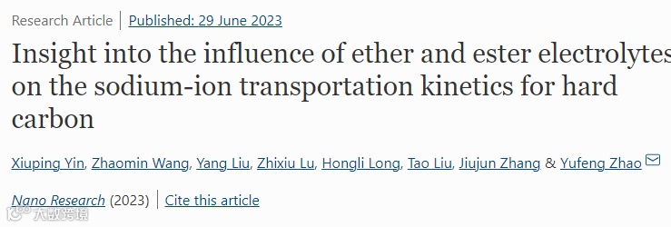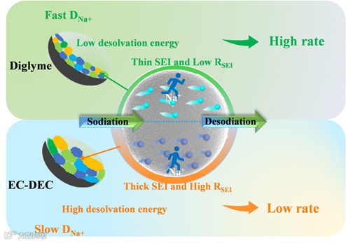 深入揭示醚和酯类电解液对硬碳中钠离子的动力学传输的影响
