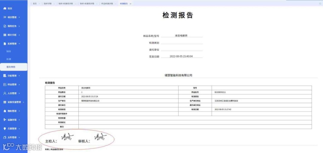 客户案例:天目湖先进储能技术研究院(以下简称研究院)是中科院物理所与江苏中关村产业园合作创立,荟萃了国内外高水平研发人员。2020年笔者团队与研究院建立了深度的战略合作关系,通过导入LIMS进行实验室的管理,提升实验室的使用效率、试验样品管控、工艺数据跟踪等。具体功能明细包括请检业务流程、样品接收、标签打印、入库/留样管理、检验任务分配、样品领用、录入检测结果、项目复核、报告编制等。