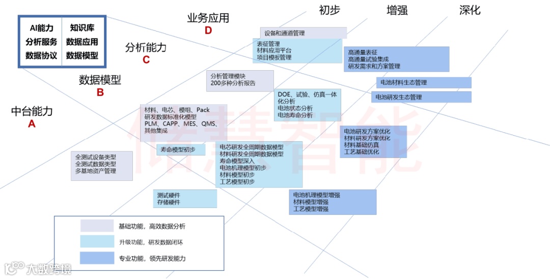 客户案例:处在高级阶段的LIMS产品可以持续赋能新能源电池企业从材料研发、电芯研发、生产工艺等的全流程数据建模与分析工作。笔者团队已经帮助某电池头部企业实现了整体的数字化转型战略规划,其中部分数据的挖掘与分析功能将在LIMS中实现,最终帮助客户企业进一步凸显并保持竞争优势。