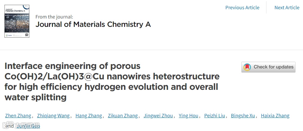 太原理工大学郭俊杰课题组JMCA:多孔Co(OH)2/La(OH)3@CuNWs异质结构的界面工程用于高效析氢和全水解