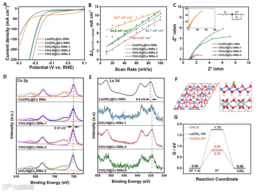 太原理工大学郭俊杰教授和章海霞副教授在国际知名杂志Journal of Materials Chemistry A上发表题为“Interface engineering of porous Co(OH)2/La(OH)3@Cu nanowires heterostructure for high efficiency hydrogen evolution and overall water splitting”的研究成果。该文章在铜纳米线上构建了多孔氢氧化钴和氢氧化镧异质结构 (记为CH/LH@Cu NWs)。