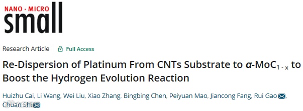 基于此,来自大连理工大学的石川教授与内蒙古大学高瑞研究员合作,在国际知名期刊Small上发表题为“Re-Dispersion of Platinum From CNTs Substrate to α-MoC1-x to Boost the Hydrogen Evolution Reaction”的观点文章。