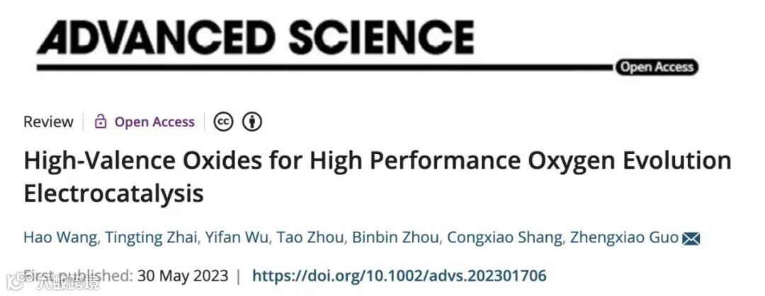近日,来自香港大学的郭正晓院士团队,在国际知名期刊Advanced Science上发表题为“High-Valence Oxides for High Performance Oxygen Evolution Electrocatalysis”的综述。该综述分析了高价态氧化物(HVOs)在OER过程中表现出优异性能的机理,讨论了HVOs电催化剂的合成策略,为其进一步设计提供了指导。最后,概述了HVOs 析氧催化剂的挑战和前景,特别是在能量转换和存储方面的潜在应用。