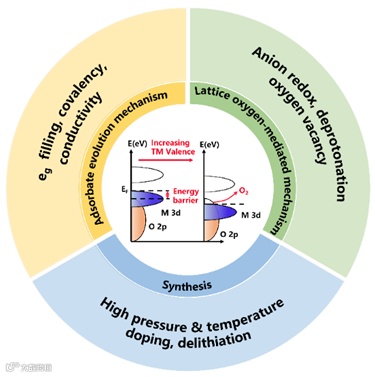 析氧反应(OER)是电解水制氢和金属-空气电池的重要半电极反应。两者都对提高交通电气化、物联网以及可再生能源与电网的效率具有重要意义,最终减少由于化石燃料燃烧产生有害废气的排放,同时确保能源供应安全,促进经济和社会的可持续发展。由于OER是4电子转移的反应,其通常具有相对缓慢的反应动力学和相对高的过电位,阻碍了它的实际商业应用。贵金属氧化物IrO2和RuO2是OER的标杆催化剂,占据着OER活性火山图的顶点位置。然而,贵金属的过高成本和其较差的稳定性也限制了它的商业应用。过渡金属氧化物(TMOs),如Ni, Fe和Co基催化剂,由于其丰富的地壳含量,有望成为贵金属催化剂的取代品。尽管通过科研工作者的不懈的努力,TMOs的催化性能有了很大的提高,但它们较大的过电位和较低的稳定性是其在商业应用之前需要解决的主要问题。最近的研究表明,通过对过渡金属的价态调节可以有效地提高TMOs本征OER活性和稳定性。