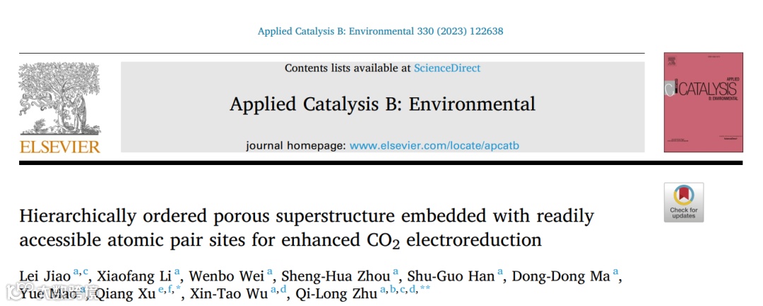 基于此,中国科学院福建物质结构研究所的朱起龙研究员,南方科技大学/京都大学徐强教授在国际知名期刊Applied Catalysis B-Environmental上发表题为“Hierarchically ordered porous superstructure embedded with readily accessible atomic pair sites for enhanced CO2 electroreduction”的研究论文。