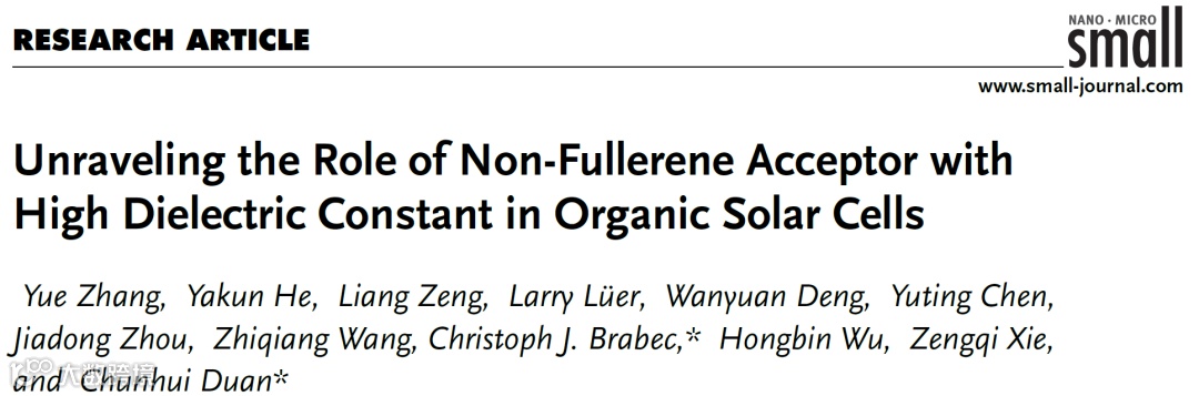 近日,华南理工大学段春晖教授与德国埃尔朗根大学教授Christoph J. Brabec教授合作,在国际知名期刊Small上发表题为“Unraveling the Role of Non-Fullerene Acceptor with High Dielectric Constant in Organic Solar Cells”的观点文章。