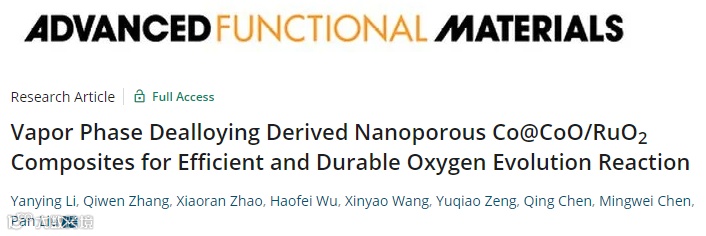 基于此,来自上海交通大学的刘攀团队在国际知名期刊Advanced Functional Materials上发表题为“Vapor Phase Dealloying Derived Nanoporous Co@CoO/RuO2 Composites for Efficient and Durable Oxygen Evolution Reaction”的文章。