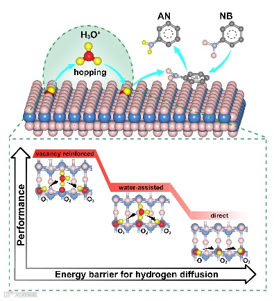 氧空位强化水辅助质子跳跃用于增强催化加氢作用