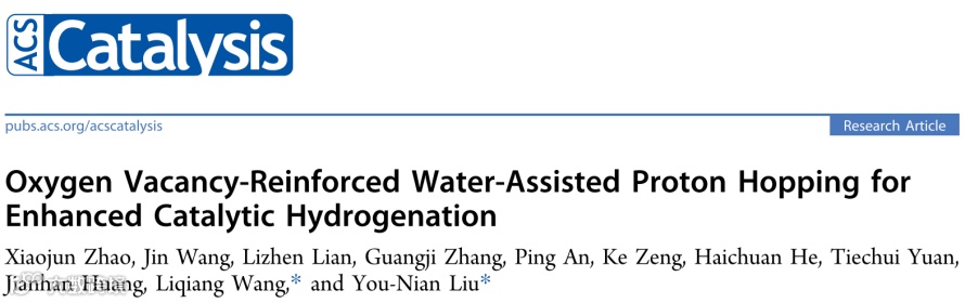 结果和理论计算表明,氧空位有利于水的吸附,这有助于质子在金属氧化物表面的跳跃,从而提高加氢性能。相关工作以“Oxygen Vacancy-Reinforced Water-Assisted Proton Hopping for Enhanced Catalytic Hydrogenation”为题发表在ACS Catalysis期刊上。