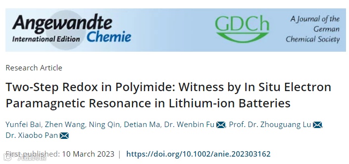 本文中,兰州大学潘效波(通讯作者)研究员、南方科技大学卢周广(通讯作者)教授和佐治亚理工学院付文斌(通讯作者)等人在Angew. Chem. Int. Ed. 期刊上发表了一篇题为“Two-Step Redox in Polyimide: Witness by In Situ Electron Paramagnetic Resonance in Lithium-ion Batteries”的文章。