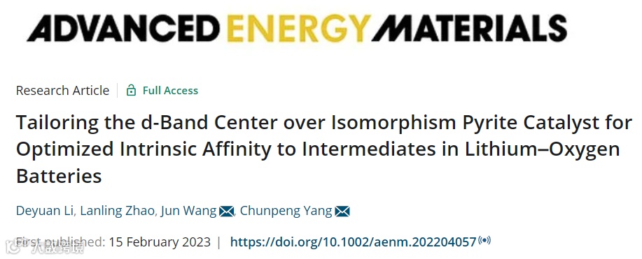 基于此,来自天津大学杨春鹏教授与山东大学的王俊副教授合作,在国际知名期刊Adv. Energy. Mater.上发表题为“Tailoring the d-Band Center over Isomorphism Pyrite Catalyst for Optimized Intrinsic Affinity to Intermediates in Lithium–Oxygen Batteries”的观点文章。该观点文章探究了d带中心理论指导合成异质同晶型黄铁矿催化剂用于调节锂氧气电池不同中间体的吸附能从而实现优异的电化学性能以探究锂氧气电池正极催化剂中催化剂结构,性能和催化机制间的关系。