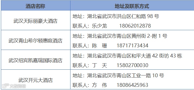 大会将为参会人员提供通勤摆渡车,往返于武汉火车站与武汉天际丽豪大酒店之间,通勤时间为2023年5月19日10:00/12:00/14:00/16:00/18:00。