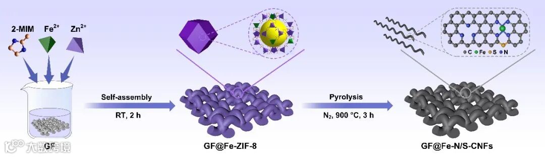 图1. GF@Fe-N/S-CNFs制备流程图