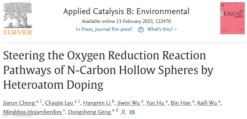 杂原子掺杂调控N-碳空心球氧还原反应路径