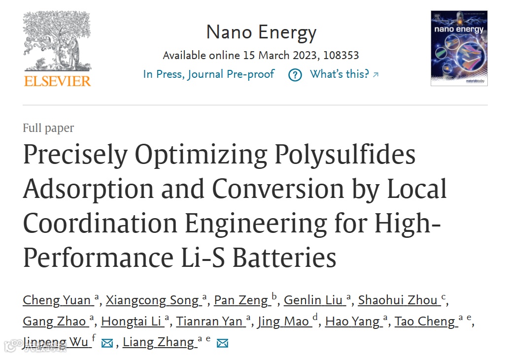 基于此,苏州大学张亮教授和清华大学吴锦鹏教授,在Nano Energy上发表题为“Precisely Optimizing Polysulfides Adsorption and Conversion by Local Coordination Engineering for High-Performance Li-S Batteries”的研究论文。