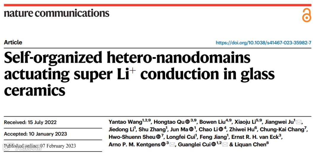 基于此,中科院青岛能源所崔光磊研究员与荷兰奈梅亨拉德堡德大学Arno P.M. Kentgens教授合作,在国际知名期刊Nature Communications上发表题为“Self-organized hetero-nanodomains actuating super Li+ conduction in glass ceramics”的研究论文。