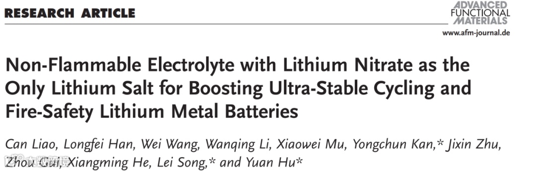 以硝酸锂为唯一锂盐的不燃电解液实现循环稳定性与火灾安全性的同步提升