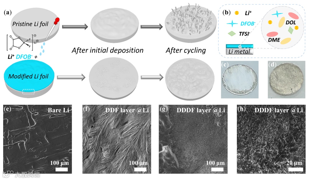 图1.改性锂(DDDF@Li)的制备示意图及微观形貌图。