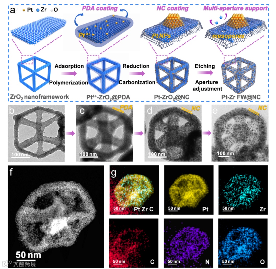 通过对N掺杂C包覆的多孔ZrO2纳米框架与Pt纳米颗粒的精密结构设计开发了一种分级多孔ORR催化体系。