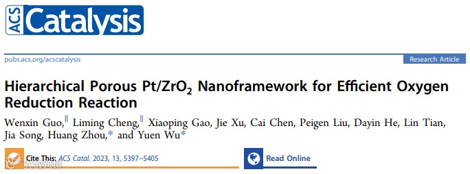 合理调节纳米催化剂的三维本征构型对于氧还原反应(ORR)和质子膜交换膜燃料电池(PEMFCs)中复杂的三相界面传质过程至关重要。基于此,中国科学技术大学吴宇恩、周煌报道了一种高效的三维分级多孔ORR催化体系,通过在Pt基催化剂中引入稳定的多孔ZrO2和导电的N掺杂C,同时对Pt基催化剂的几何和电子结构进行优化,以实现催化活性和稳定性的提升。